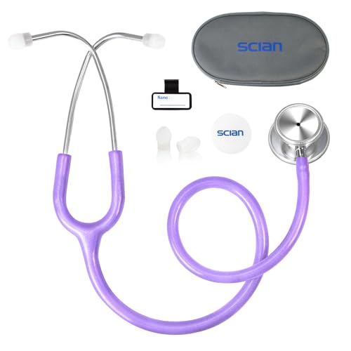 SCIAN Doppelkopf Stethoskop für Krankenschwestern, Ärzte, Medizinstudenten, Heimgebrauch, klassisches Edelstahl Kardiologie Stethoskop mit Zubehör und Tragetasche, Schimmerndes lila Rohr