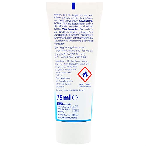 LIEFERUMFANG: 2x Hygiene-Gel // Füllmenge je Tube: 75 ml // Haltbarkeit: 1 Jahr nach dem Öffnen // Anwendungsgebiet: Handhygiene // Enthält 63 % Ethanol
