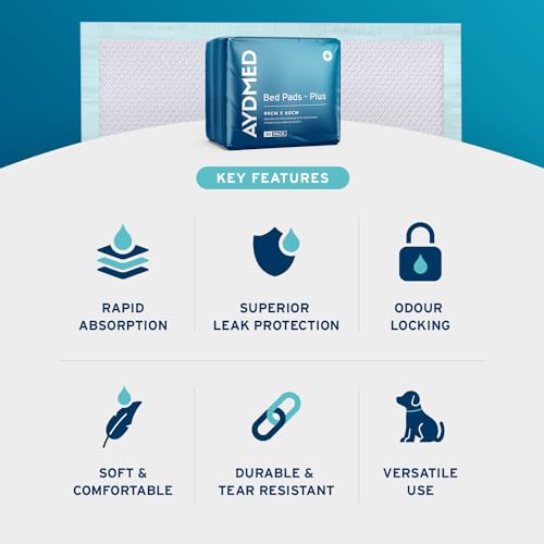 VIELSEITIG EINSETZBAR: Perfekt für den Einsatz zu Hause, in Krankenhäusern oder Krankenhäusern auf Betten, Sofas, Stühlen oder in jedem anderen Szenario für diejenigen, die unter Inkontinenz leiden. Aydmed Inkontinenz-Betteinlagen können auch für Kinder verwendet werden, die bettnass sind und zum Schutz von Oberflächen beim Wickeln von Babywindeln verwendet werden.