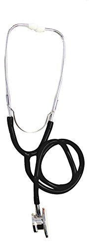 das Doppelkopf-Stethoskop hat zwei empfindliche Membranen, die in einem umschaltbaren Bruststück aus eloxiertem Aluminium angebracht sind. Die Geräuschaufnahme erfolgt dann jeweils über eine Membran mit ca. 45 oder 30 mm Durchmesser. Der nichthaftende Y-Schlauch hat eine Länge von ca. 55 cm, an dem über einen Metallbügel mit Feder die Ohrstücke angebracht sind