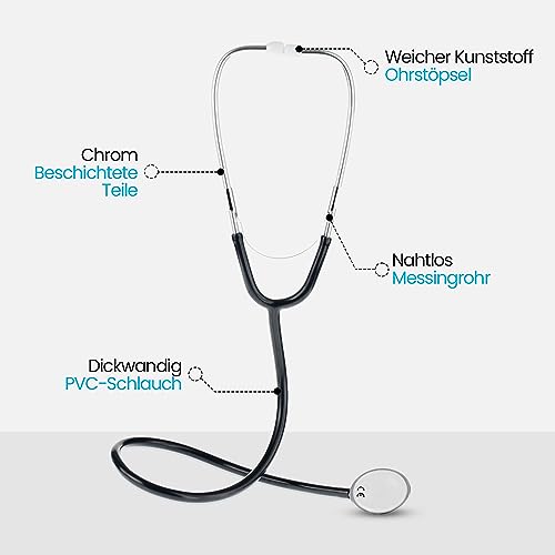 Dieses Stethoskop verfügt über ein doppelköpfiges Bruststück mit Membran und Glocke für einen vielseitigen Einsatz. Das Diaphragma ist perfekt für hochfrequente Geräusche wie Atem- und Darmgeräusche, während die Glocke ideal für niederfrequente Geräusche wie Herzgeräusche und Blutergüsse ist.