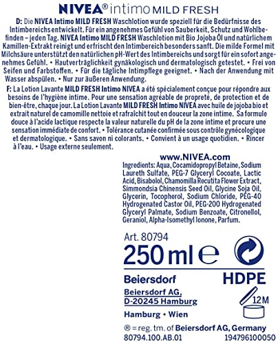 Lieferumfang & Details – NIVEA Intimo Waschlotion Mild Fresh (250 ml), mildes Waschgel für Intimbereich ohne Seife, sanfte Intimreinigung und Pflege, Artikelnummer 80794