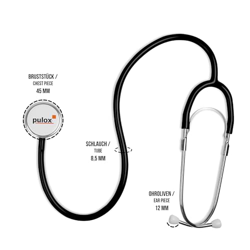 Pulox Flachkopf Stethoskop – Professionelles Abhörgerät für Ärzte, Krankenschwestern und Sanitäter – Schwarz