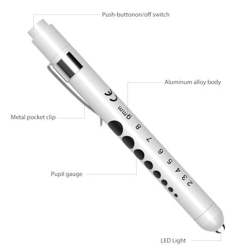 【Hochwertige Materialien】Diese Tragbare Diagnostikleuchte besteht aus einer anodisierten Aluminiumlegierung, so ist diese Stiftlampe robust, langlebig, leicht und benutzerfreundlich, außerdem hat optimales Preis-Leistungs-Verhältnis!