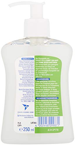 Die Flüssigseife von Sagrotan ist sanft zur Haut und stark gegen Bakterien. Die Hautpflege-Formel mit feuchtigkeitsspendenden Inhaltsstoffen* bietet