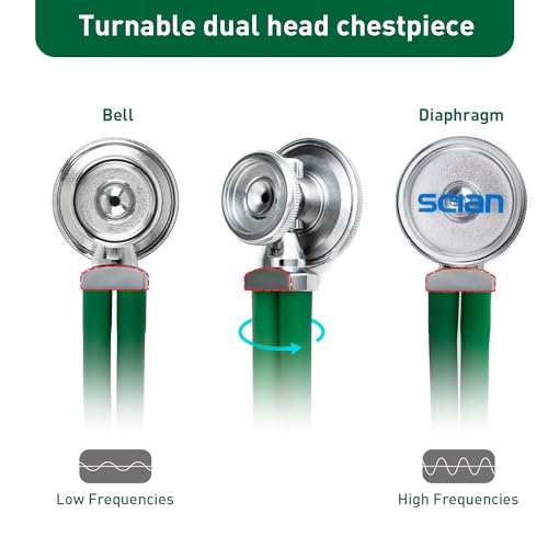 Doppelkopf-Stethoskop für Erwachsene und Kinder: Es ist ein schön gebautes medizinisches Diagnosegerät mit seinem schweren verchromten doppelten Bruststück und großen, kleinen Doppelmembranen. Drehbares Bruststück ermöglicht Flexibilität, je nach Alter und Zustand Ihres Patienten beide Seiten zu drehen und zu verwenden.Genießen Sie genaue Vielseitigkeit für niedrige und hohe Frequenzen.