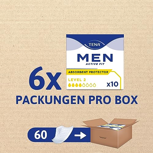 TENA MEN Absorbierende Protektoren, Level 2-60 Einlagen im Monatspaket (6 x 10), einzeln verpackt – Hygieneeinlagen für Männer bei mittlerem Harnverlust und Inkontinenz